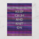 Reste calme et tricote ! Impression plate de tricot multicolore avec du texte blanc sur des rayures dans les tons violet, bleu et rouge. Le cadeau parfait pour quiconque aime le tricot.