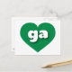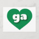 Cette carte postale est dotée d'un coeur vert vif contenant la ga des lettres coques inférieures, audacieuses, blanches et arrondies, une abréviation ludique pour la Géorgie, l'état de pêche. Le verso de la carte est vide, en attendant vos sentiments manuscrits ou le texte customisé.