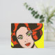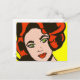 Attrapez-vous ! Cette carte postale rétro Ginger Snap Comic Book présente une beauté aux cheveux de gingembre avec des yeux verts piercing et des lèvres rouges. La femme aux cheveux rouges est sur un arrière - plan jaune vif. Envoyez une attitude par la poste !