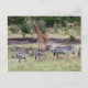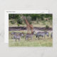 Scène africaine classique de girafe et rangée de zèbres dans le Masaï Mara, Kenya. Carte postale entièrement personnalisable.