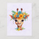 Carte Postale Giraffe mignonne à couronne florale