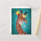Une jolie girafe avec des petits oiseaux jaunes sur la tête et un dandelion dans la bouche. Fait en acrylique traditionnel avec un arrière - plan bleu foncé et vert clair de Donna Leger. Tous droits réservés.