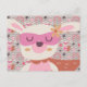 Un super-héros lapin blanc dans un masque rose et une robe avec un coeur, une cape brune, et des chaussettes rayées sur un arrière - plan de rayures de chevrons gris et blanc, rose, vin profond et étoiles rouges, et des arbres bleus et rouges sur les produits pour la maison, le bureau, et l'usage personnel. Ce design de Girl Superhero Bunny est idéal pour les enfants et les adultes qui aiment les designs amusants, colorés, fantaisistes!