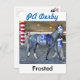 Ce magnifique colt rose ou gris "Fosted" porte la sacoche bleue royale numéro 3. Frosted est par le principal sire Tapit, car il semble prêt à gagner le derby de Pennsylvanie à Parx. Son marié le parade à travers le paddock fermé alors qu'il semble dire "J'ai eu ça" Fleetphoto