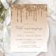 Cette invitation tendance pour une fête d'anniversaire de mariage de 50 ans présente une bordure de fausse dripping pailletée dorée et un fond ombré. Les mots "50e Anniversaire" et les noms des mariés apparaissent dans un script fantaisiste de couleur or, le reste du texte personnalisable étant en police sans empattement de couleur or.