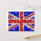 Envolez le drapeau britannique avec ce design Union Jack amusant avec des étoiles éparpillées sur un arrière - plan motif stylisé "à paillettes". Carte postale avec un design personnalisable rouge, blanc, gris argenté et bleu pour vous permettre de personnaliser avec votre propre texte, photos et idées. Veuillez noter qu'il s'agit d'une image art numérique imprimée. Le produit ne brille pas ou ne contient pas de parties scintillant ou de paillettes réelles.