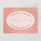Sur un arrière - plan rose en or avec parties scintillant, il y a un ovale blanc transparent avec du texte dedans. Le nom et le mot "Godmère" sont courbés, le message "sera-tu" est écrit dans un script manuscrit. Au dos, il y a un message et une adresse. Le message au dos est écrit dans le même script d'écriture manuscrite. Tout le texte a une couleur rouge-brun semblable à l'arrière - plan or rose.