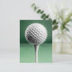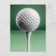 Une balle de golf blanche sur un tee blanc devant un arrière - plan vert.