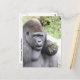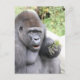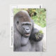 Photo d'un gorille des basses terres de l'ouest qui s'est tourné vers la caméra pendant qu'il mangeait et a été attrapé cadre de gel avec un look qui ressemble à une surprise ou un choc.