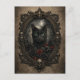 Make a bold statement with this gothic black cat postcard, featuring a hauntingly elegant feline framed in an ornate Victorian-style oval adorned with skull details and dark roses. Set against a moody, antique background with moonlit shadows, this artwork blends gothic romance, dark fantasy, and vintage elegance.