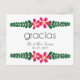 Cette carte postale de remerciement présente une jolie illustration florale rose et le terme espagnol "Gracias" pour Merci. C'est la façon parfaite de remercier vos amis/membres de votre famille pour leur présence/cadeaux sur votre mariage. Il peut également être utilisé pour une variété d'autres occasions. Vous pouvez déplacer/supprimer les éléments/types de conception selon votre choix/vos préférences.