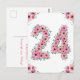 Belle vingt-quatrième anniversaire grand numéro vingt-quatre décoré de jolies fleurs roses aquarelle et de feuillage vert. Cadeau d'anniversaire 24 ans idéal pour votre fille pour une carte postale unique et très spéciale.