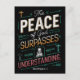 Carte postale noire avec les mots La Paix de Dieu avec un design unique. La paix de Dieu dépasse la compréhension. La paix de Dieu dépasse la compréhension.