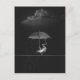 Carte Postale Grenouille noire et blanche avec parapluie en plui