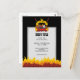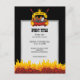 Barbecue grill sur charbon flamboyant, bannière de défilement avec texte personnalisé sur fourche et spatule.