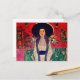 Carte postale avec la peinture à l’huile de Gustav Klimt Portrait d’Adele Bloch-Bauer II (1912). Une femme dans un casquette noir se dresse dans un magnifique paysage de rouge vif, violet, rose et vert avec des fleurs et des chevaux. Un grand cadeau pour les amateurs d'art Art Nouveau et autrichien.