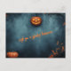 Cette carte postale Halloween personnalisée est dotée d'un citrouille sculpté Jack-o-Lantern sur un arrière - plan bleu avec un texte personnalisable.