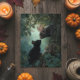 Carte Postale Halloween Adorable Kitten rencontre Bat