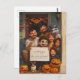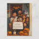 C'est une carte postale super mignonne pour Halloween pour envoyer un message drôle à vos proches. Dans ce design il y a une famille avec des costumes et des masques Halloween assis sur le porche de leur maison et tenant une bannière blanche avec un texte personnalisable.