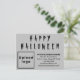 Horreur, effrayant, éffrayant, déplaisant, fantôme, monstre, crâne, citrouille et ainsi de suite. Joyeux Halloween ! Vacances à effrayer mais pas à effrayer les clients ou les clients. Vacances pour célébrer cet octobre et pour annoncer aussi votre entreprise. Carte postale de vacances personnalisable que vous pouvez mettre votre marque d'affaires et avec salutation Halloween. Customisez-le et utilisez-le pour accueillir vos clients ou clients cette Halloween. Vous pouvez également l'utiliser comme matériel de marketing pour annoncer votre entreprise ou pour promouvoir votre marque. Carte postale de vacances personnalisable que vous pouvez utiliser pour développer la sensibilisation de marque. Les couleurs de design sont des textes noirs sur arrière - plan gris. Pour customiser cette carte postale, tapez votre nom d'entreprise, votre adresse, votre numéro de téléphone, votre courriel, votre site Web ou votre page de médias sociaux et téléchargez votre logo d'entreprise. Après avoir tapé des textes et chargé le logo, veuillez vérifier l'apparence. Si l'apparence vous plaît, vous pouvez passer votre commande maintenant. Si vous avez besoin de redimensionner et déplacer les textes et le logo pour s'adapter à cette carte postale, s'il vous plaît changer dans l'outil de conception. Vous pouvez également modifier le style de police, la couleur de police et la couleur arrière - plan dans l'outil de conception. Vous pouvez également ajouter des images et des textes à l'arrière de l'outil de conception. Joyeux Halloween ! Je vous souhaite plus de ventes cette saison des Fêtes.