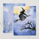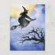 Aquarelle amusante Carte thématique Halloween complète avec une sorcière volante, éffrayant vieux arbre et moisson lune. Personnalisez un message à envoyer à vos petits-enfants, amis ou famille.