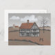 Colourful artwork of an old medieval house in the English countryside, with an old church in the background, and a couple of hares boxing in the foreground. Perfect for anyone who loves folk art.