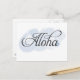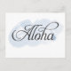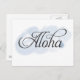 Bonjour à Hawaiian - Aloha dans une police cursive avec une aquarelle bleue en dessous.