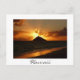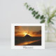 Carte postale avec lever de soleil sur une île à Lanikai Beach, sur la rive est de l'île d'Oahu, Hawaii avec une frontière blanche et le texte : 'Hawaii'.
