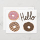 Trois beignets colorés créent une carte postale "Hello" joyeuse et amusante à envoyer à des amis, anciens et nouveaux. Art créé par Tracy Lopez.