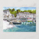 Une jeune famille (la mère était juste hors de la photo) et un chien alsacien profitent d'une journée ensoleillée et chaude au port de Padstow. Photo de Christine Hudson, peinture originale à l'aquarelle. (De nombreux aspects du beau comté de Cornwall, y compris certains de ses ports, figurent dans mon roman apocalyptique, A Time To Run (Colin Hudson), maintenant disponible en format Kindle et eBook).