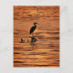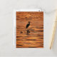 Cette carte postale d'art présente un Grand Héron Bleu (ardea herodias) en silhouette, pêchant dans les eaux peu profondes du lac Cayuga à Ithaca, New York, qui est l'un des lacs Finger de l'état de New York. Un beau coucher de soleil orange, jaune et or colore les vagues et se répand dans un motif abstrait.