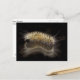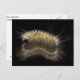 Cette carte postale présente une petite Hickory Tussock Caterpillar (Lophocampa caryae) réfléchie sur une surface en verre noir. Ces belles chenilles blanches et noires sont recouvertes de poils gris-blanc. Il y a une rangée de touffes noires sur les huit premiers segments abdominaux et des paires de longues touffes noires sur les premier et septième segments. Ils ne font qu'un pouce de long. Ne vous laissez pas tromper par leur beauté. Le contact avec les poils ou épines toxiques de cette minuscule créature peut provoquer des éruptions cutanées ou même une réaction d'hypersensibilité chez certains coques.