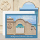 Vue sur l'océan depuis Hollywood Beach Florida Broadwalk sur une carte postale de tourisme photographique. En regardant par une fenêtre dans le mur le long de la promenade de bord, on aperçoit la plage de sable et les différentes nuances d'eau et de ciel bleus et juste un soupçon de plage colorée avec leurs chaises. C'est une photographie originale de bord de mer par JLW_PHOTOGRAPHY.