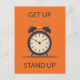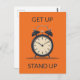 Cette carte postale a une simple illustration d'horloge bureau contre un arrière - plan orange solide avec le texte personnalisable "se lever, se lever".