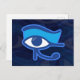 Carte postale avec l'oeil de Horus, symbole de la protection dans l'Egypte ancienne. Cette affiche présente l'oeil de Horus dans les tons bleus sur les yeux de Horus défraîchis dans l'arrière - plan.