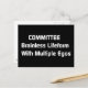 La meilleure façon de NE PAS faire quelque chose est de former un comité pour le faire. Si vous êtes coincé sur l'un d'eux, voici un moyen de faire connaître votre opinion : Comité : Une vie sans cerveau avec plusieurs égos." Idéal pour les réunions aussi ou le coller sur votre voiture pour que tout le monde sache que vous détestez avoir votre temps perdu.