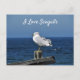 Cette belle carte postale présente une majestueuse mouette Seagull perchée sur une barrière en bois à Point Reyes National Seashore North Beach. Le bleu plus clair du ciel et le bleu plus profond de l'océan contrastent avec la couleur claire du mouette. Le vent de l'océan souffle à travers les plumes de la Mouette et les frotte. Cette carte postale est parfaite pour tous. Texte : J'aime les mouettes