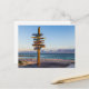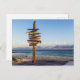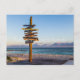 Panneau de plage directionnel en bois sur le poteau sur la belle plage de sable blanc tropical