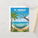 Un hamac rayé est suspendu à une branche de palmier au-dessus d'une plage de sable avec l'océan et le ciel en arrière-plan.