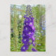 Carte postale imprimé fleurs de delphinium violet