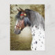 OEuvre d'art numérique originale de Jayne Wilson avec le portrait d'un Appaloosa Indian Pony dans une cascade rouge, aux accents dorés et aux plumes.