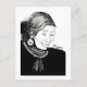 Illustration en noir et blanc à l'encre noire d'une femme indienne âgée.