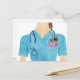 Célébrez le dévouement extraordinaire de nos héros quotidiens avec notre carte de vœux de reconnaissance pour infirmières. Cette superbe illustration à l'aquarelle d'une infirmière avec un stéthoscope floral et le mot Héroïne sur sa poche.