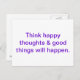 Recipients can perch this postcard anywhere around their home or office as reminder of the power of thinking happy thoughts.