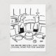 Une femme se tient immobile dans sa cuisine en préparant le dîner. Elle explique à son mari que la recette disait "Tenez-vous après la cuisine" ! Drôle dessin animé de cuisine. Blague amusante sur une carte postale.