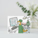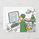 Drôle carte de dessin médical. Un chirurgien asiatique est sur le point de mener une opération dans un théâtre d'opération et vérifie les instructions en ligne via un écran d'ordinateur. humour Médicale.
