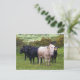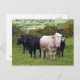 Un troupeau de bétail d'angus noirs est conduit par la vache blonde vers l'endroit de pique-nique au sommet de Cley Hill.