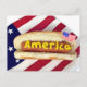 L'Amérique écrite avec de la moutarde sur hot dog en brioche sur la plaque du drapeau pour la fête de vacances