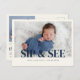 Vous êtes invités à une délicieuse Sip and See pour célébrer l'arrivée de notre plus récent lot de joie! L'avant de l'invitation présente une grande photo adorable avec "Sip and See" élégamment imprimée en bas, laissant de l'espace sous le nom et la date de naissance du bébé. Au verso, vous trouverez les détails de l'envoi soigneusement placés à droite, tandis que sur le côté gauche, une autre image de charme et tous les détails de la fête, y compris la date, l'heure et l'emplacement. Rejoignez-nous pour un après-midi de rafraîchissements et de joie en nous présentant notre précieuse petite fille à la famille et aux amis.
