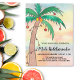 Famille Invitation et amis à votre Mele Kalikimaka Party avec ces invitations festives amusantes. Elles disposent d'un palmier peint à la main et décoré de lumières et de billes sur un arrière - plan aquarelle. Customisez ces invitations avec vos coordonnées. Aquarelle originale © Michele Davies.